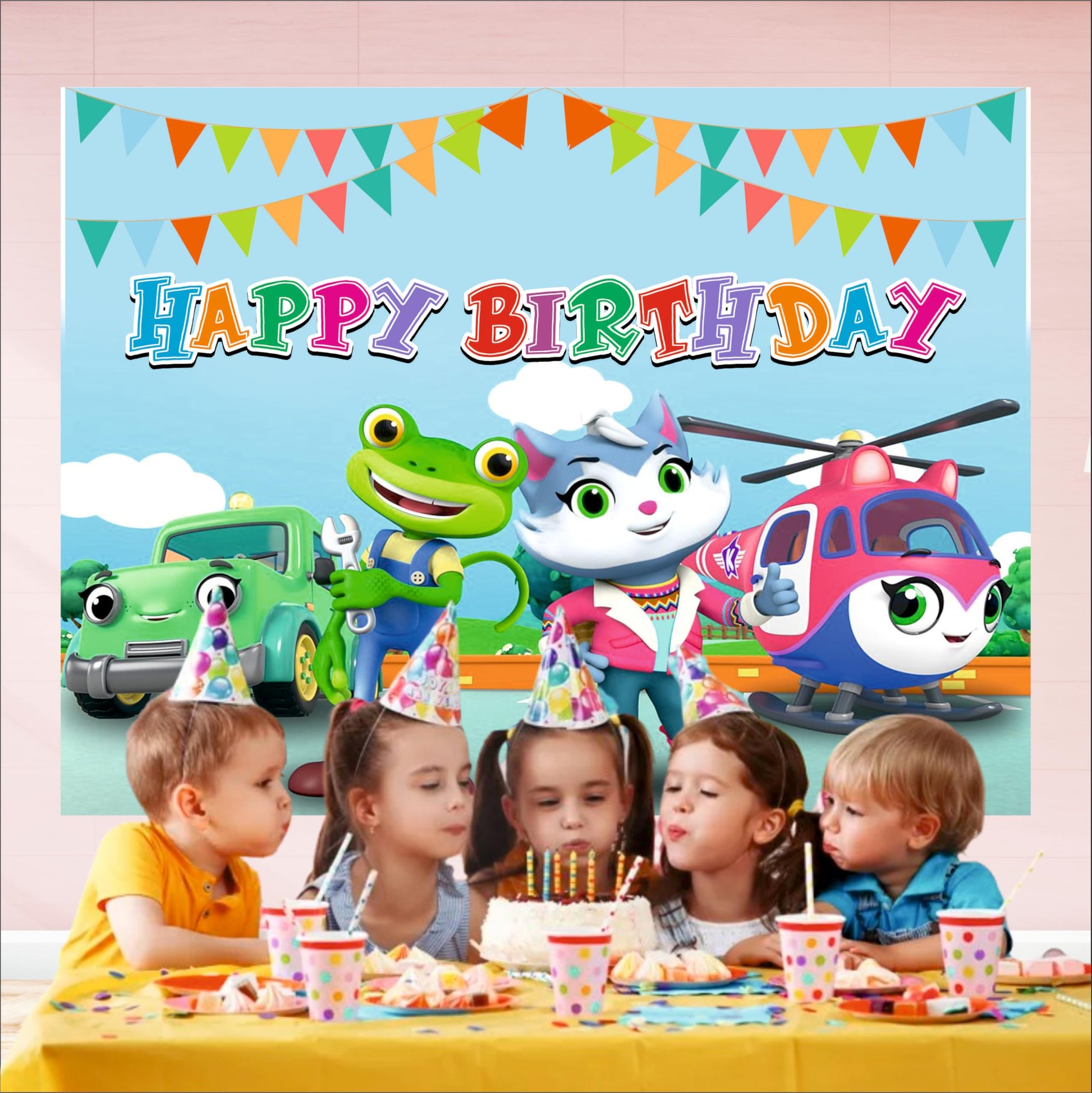 Gecko's Garage Birthday Theme Backdrop for Kids